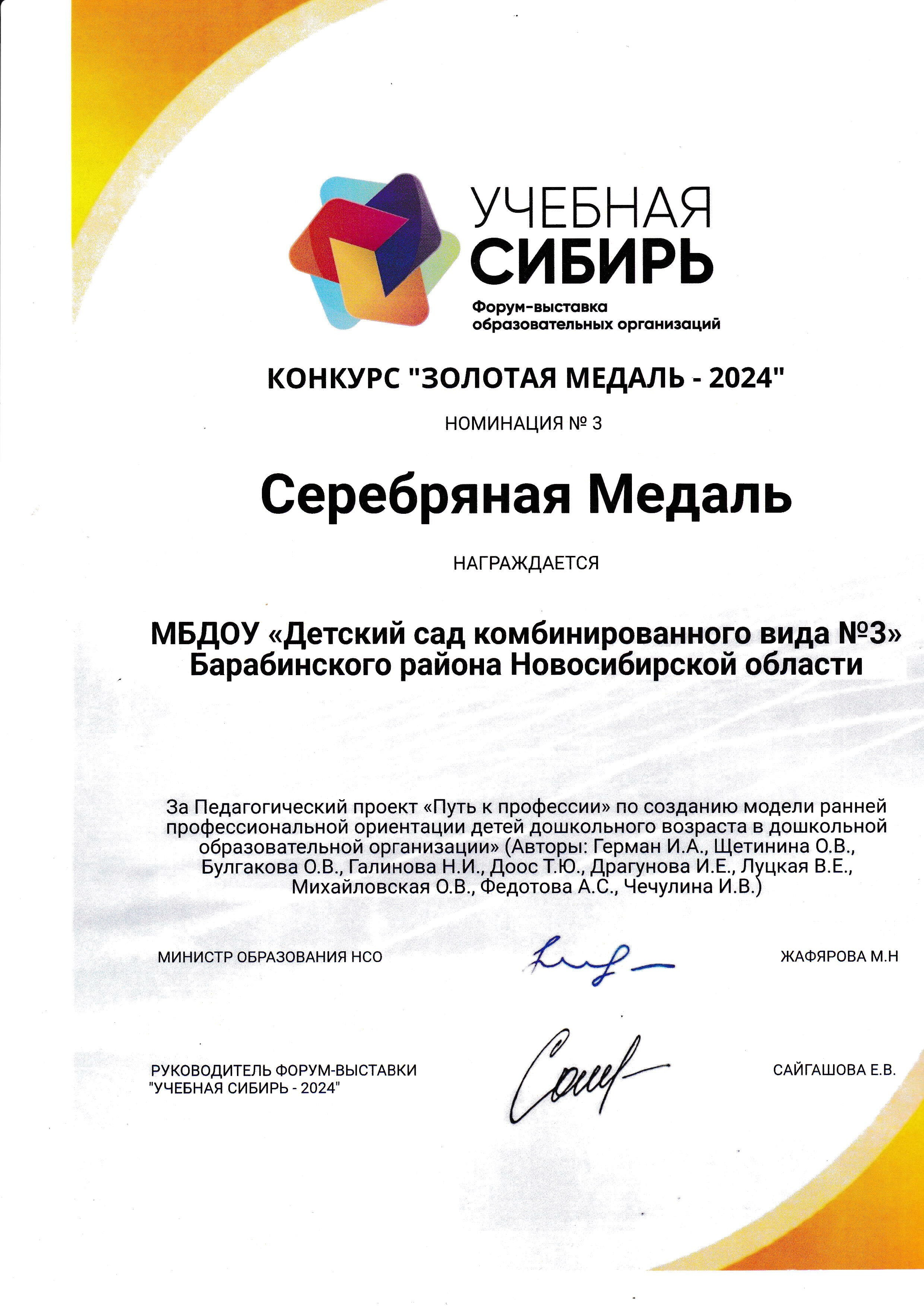 СЕРЕБРЯНАЯ МЕДАЛЬ_Конкурс "Золотая медаль - 2024" номинация №3 .Форум - выставка образовательных организаций "Учебная Сибирь"